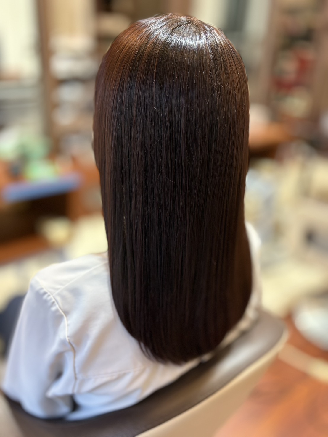 後ろ姿が一枚の写真になるほど、美しい艶髪へ。